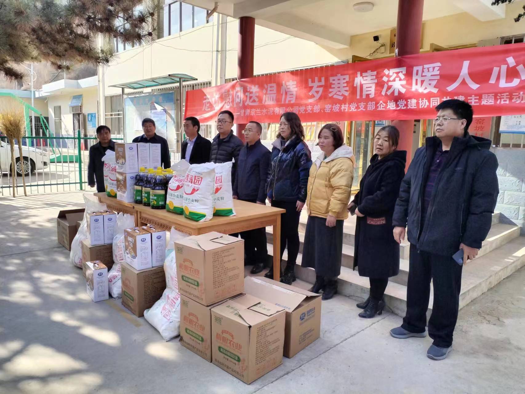 歲寒情更濃,牽掛暖人心。在春節(jié)來臨之際,甘肅京蘭水泥有限公司黨支部在企業(yè)所在地小康營鄉(xiāng)、新營鎮(zhèn)、高崖鎮(zhèn)開展了“送溫暖,獻愛心,企業(yè)在行動”村企聯(lián)建活動,主要對涉企鄉(xiāng)鎮(zhèn)的老年人、困難家庭及罹患重病人員進行了慰問。此次活動累計慰問困難群眾122人(戶),發(fā)放面粉(10kg)122袋、食用油(5kg)122桶、純牛奶122箱、重病人員500元現(xiàn)金/人。